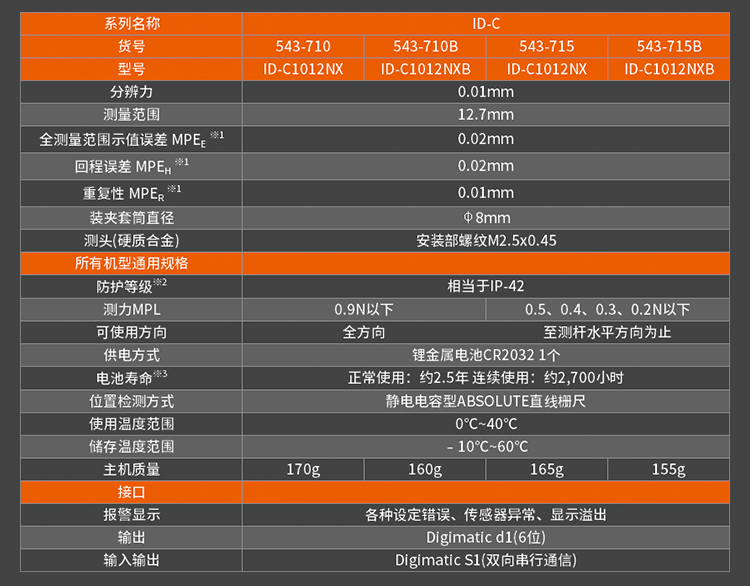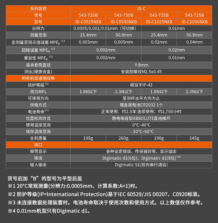 日本mitutoyo三豐數顯千分表543-390B/470B/394B/400B配有數據輸出端口,使其能連入測量網絡系統和統計過程控制系統。......
